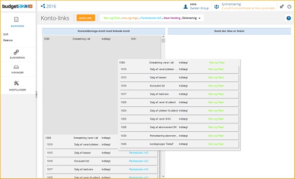 Struktureret og automatiseret konsolidering af mange virksomheder. Du kan erstatte regnearkene med budget123+, og få et solidt og gennemarbejdet værktøj, der automatisk henter alle data og klare alle udregningerne. Du kan hurtigt anskue virksomhederne som en enkelt enhed, samle nogen i grupper eller fokusere på individuelle virksomheder – også selvom der er forskellige kontoplaner og valuta i spil. Det skaber en altid opdateret viden om alle virksomheder, og minimer dine administrative timer.