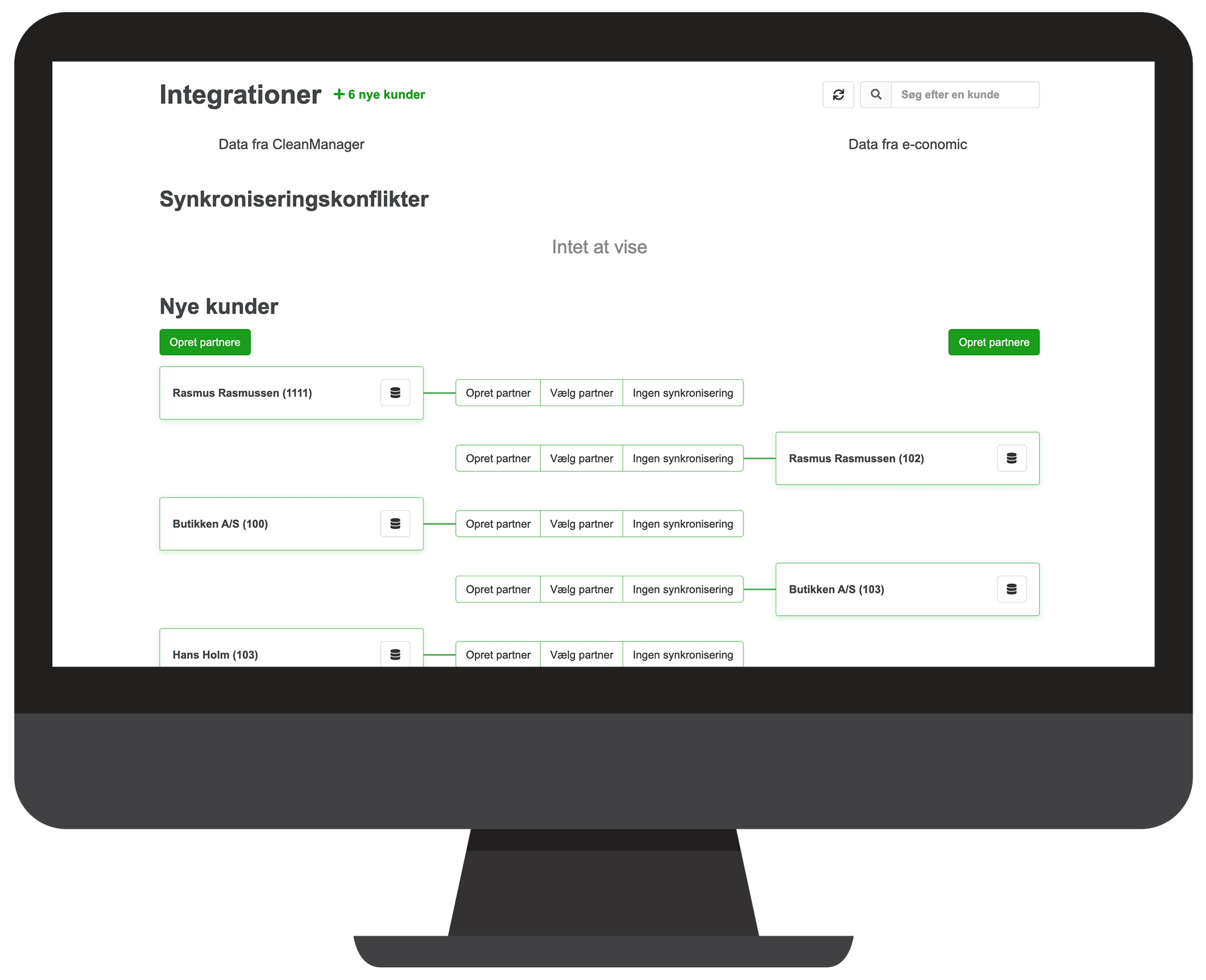 - Importér hurtigt alle kunder mellem e-conomic og CleanManager, og hold kundedata opdateret med automatisk synkronisering
