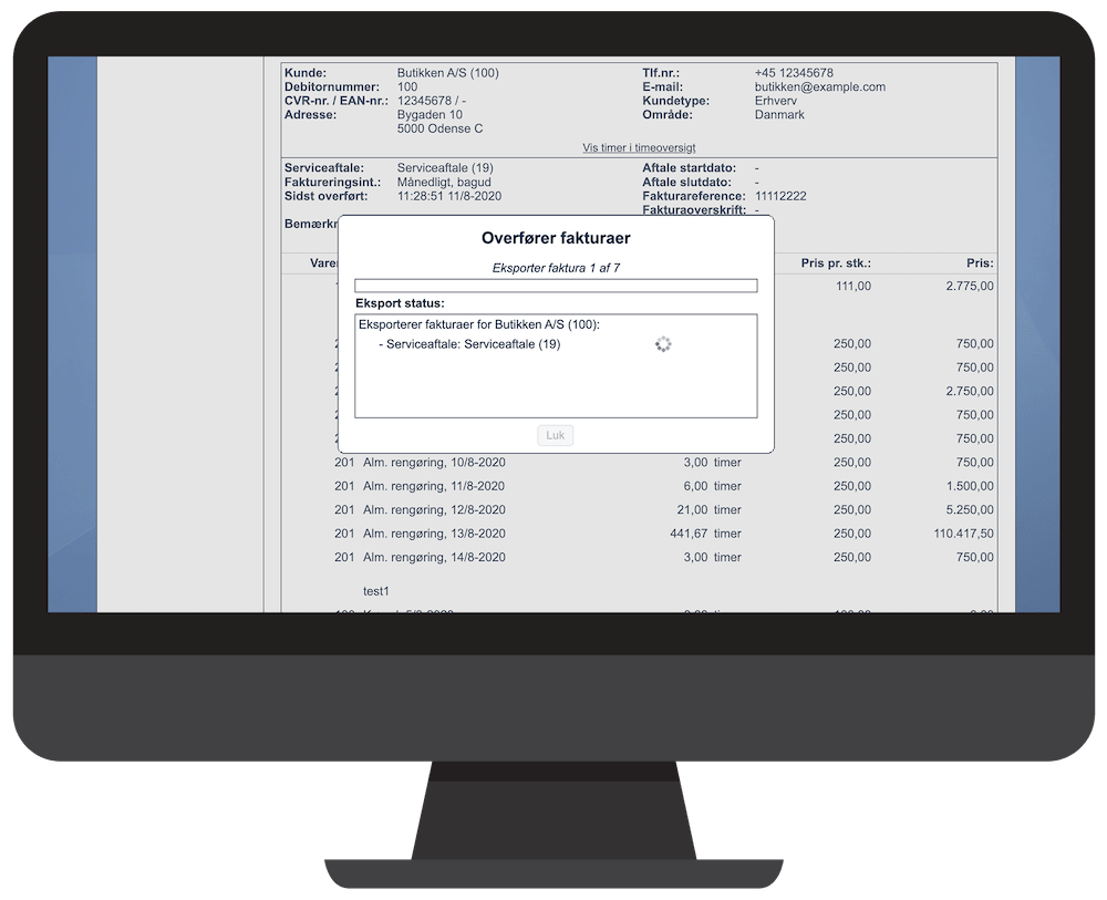 - Eksportér fakturaer for alle eller individuelle kunder baseret på tidsperioder eller faktureringsintervaller