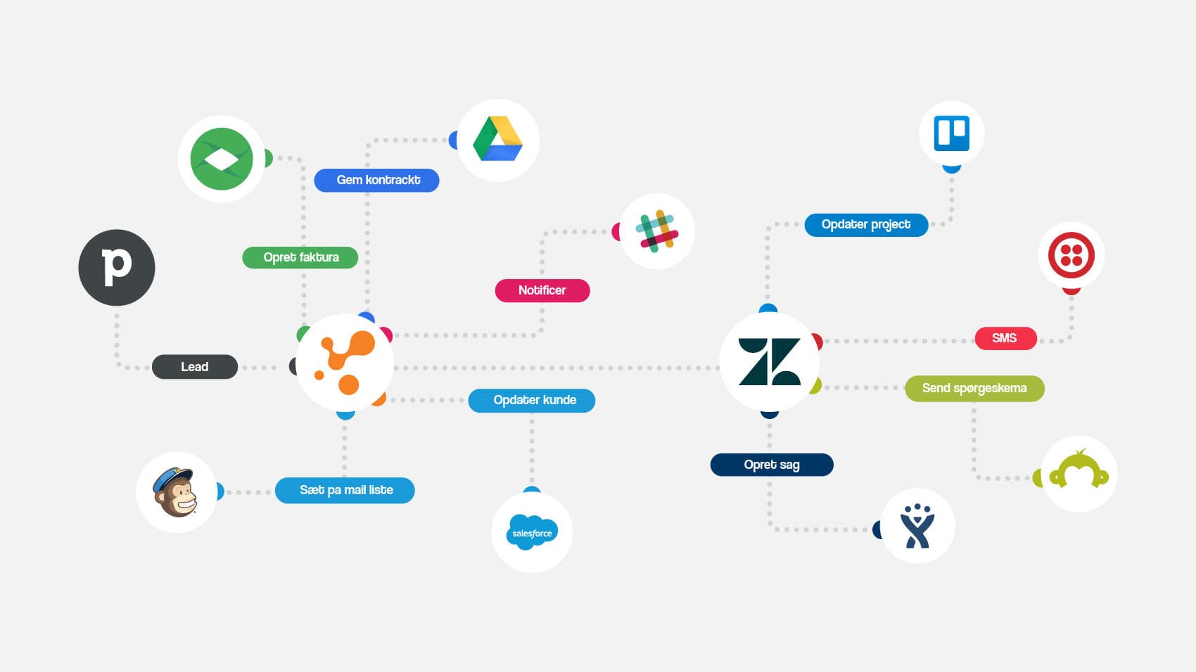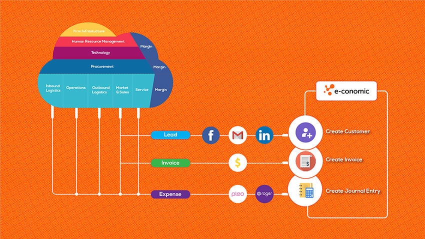 Digitalisér og automatisér dit flow mellem e-conomic og MailChimp og tilføj en kunde til en mailingliste, når du opretter en kunde eller en faktura i e-conomic regnskabsprogram. Du definerer regelsættet for, hvornår og hvilket data der skal udveksles mellem de to applikationer.
