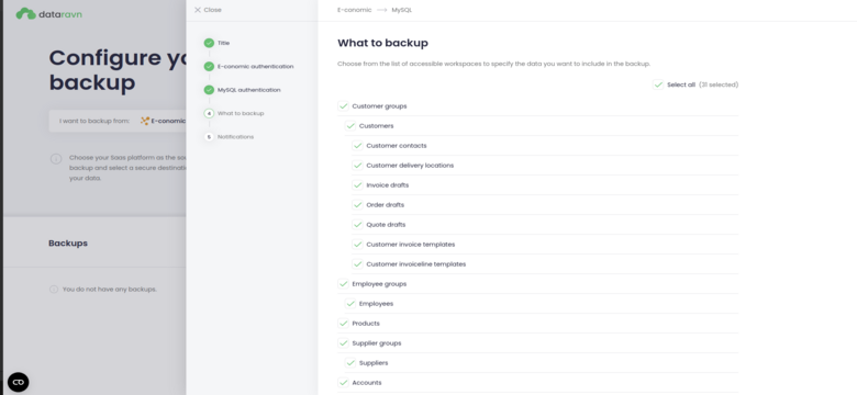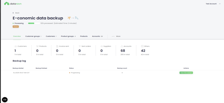 Med DataRavn kan du nemt sørge for backup af dine e-conomic data. Du kan selv vælge, om du vil have din backup hosted hos DataRavn eller på din egen server. Med DataRavn sorteres backup-versioner efter dato, så du nemt kan gendanne eller kopiere dine data ved behov. Afhængigt af dine ønsker, kan du vælge en løsning ud fra funktioner som antal brugere, integrationer og backupfrekvenser. Der er også mulighed for at vælge en fuldt ud skræddersyet pakke.