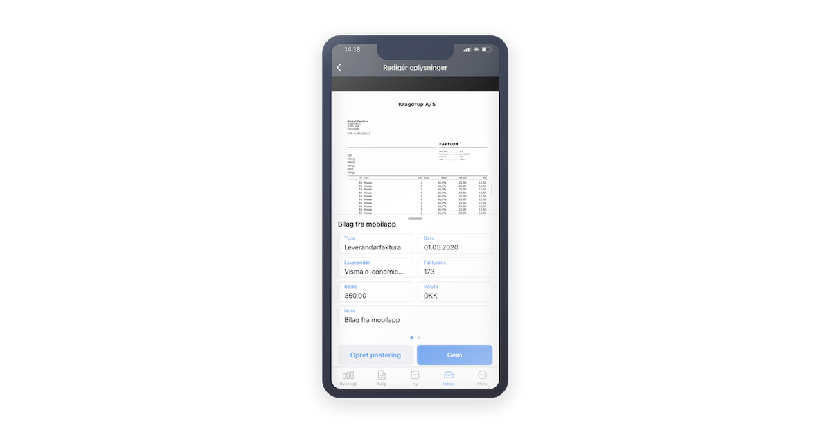 - Tag billeder af dine kvitteringer, og send dem til e-conomic