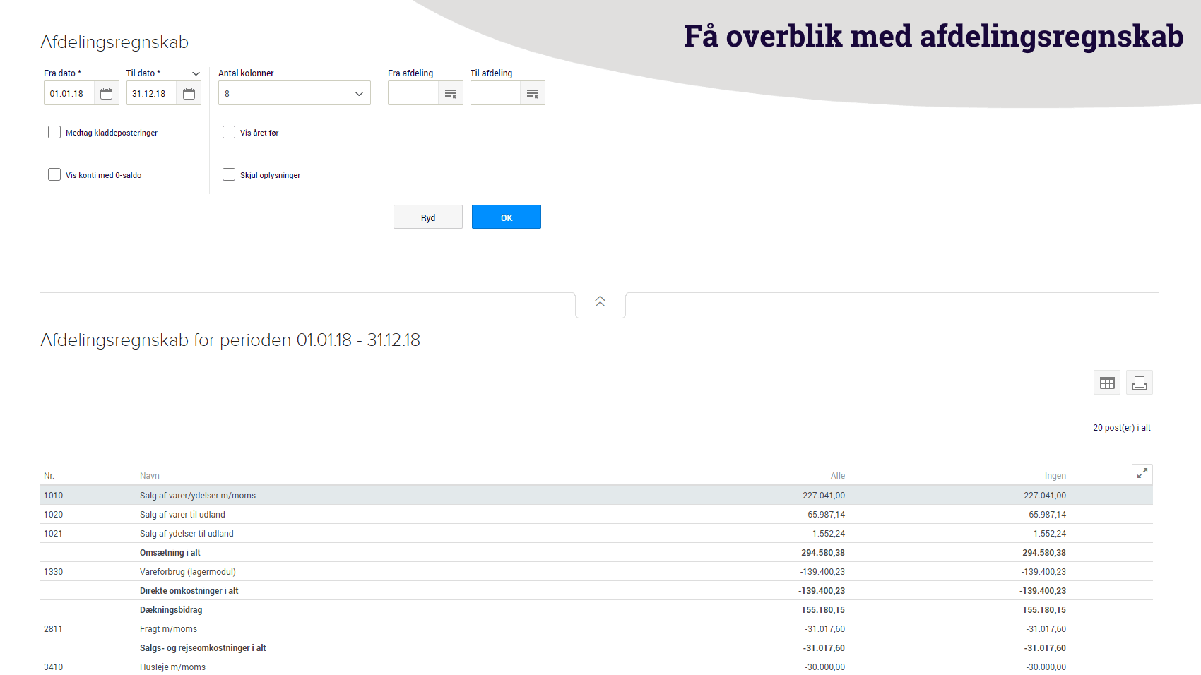 - Få overblik over regnskabet på dimensionsniveau