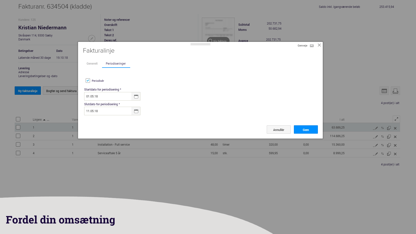 - Fordel omsætning og omkostninger over flere måneder