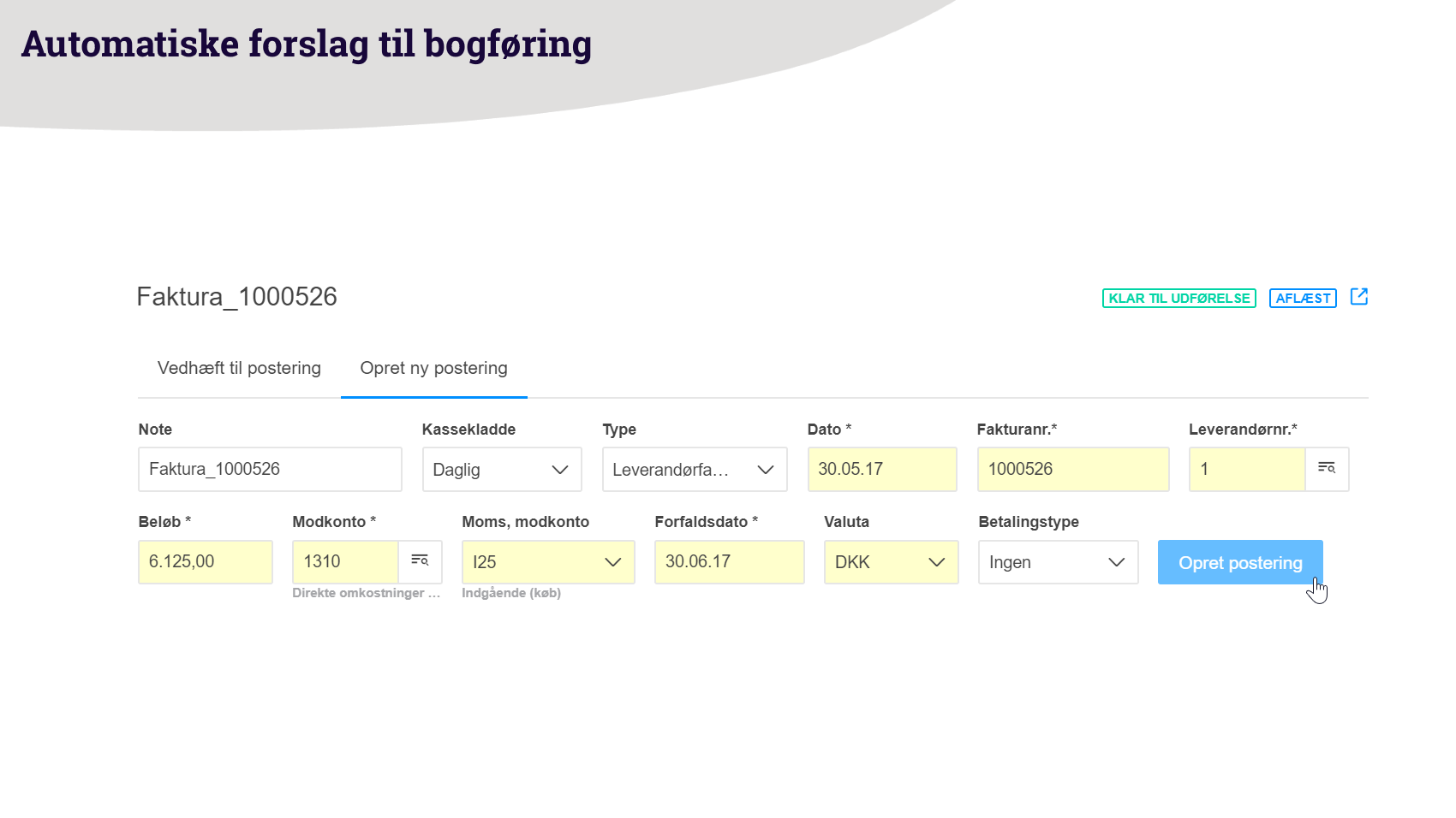 - Modtag forslag til, hvordan bilag og fakturaer skal bogføres