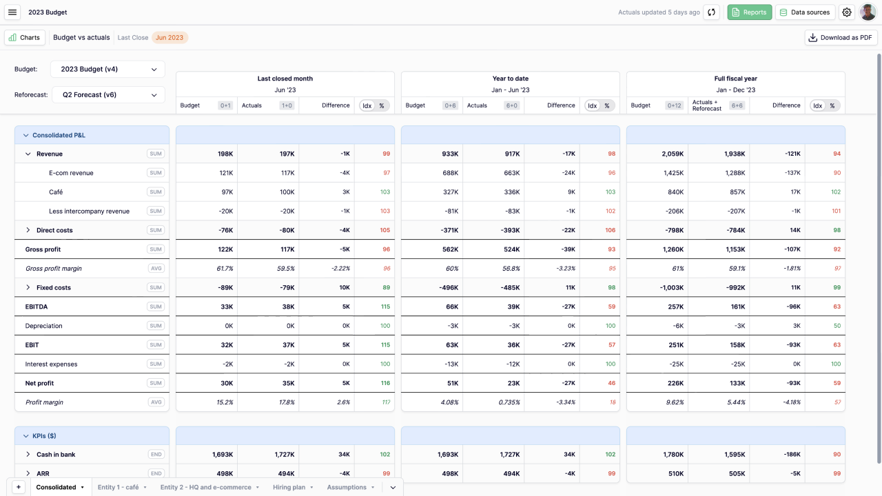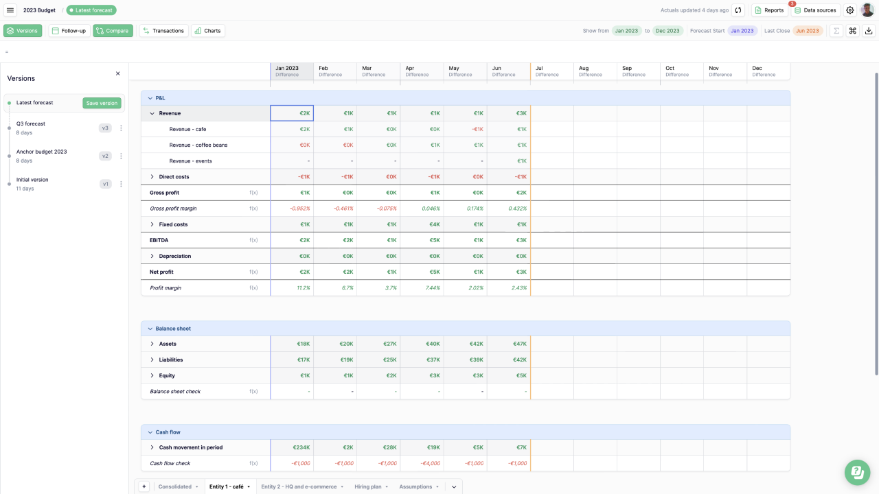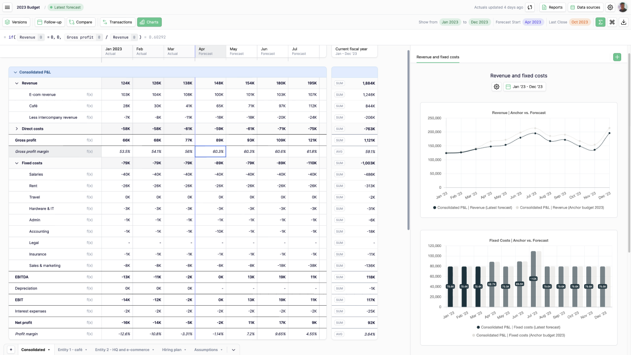 - Sammenligne ankerbudget mod løbende forecasts