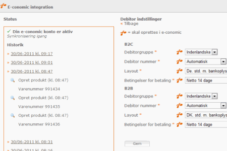 - Synkronisér alle webshoppens produkter, varianter, debitorer, ordrer m.m. med e-conomic hvert 15. minut - uden at gøre din webshop langsom