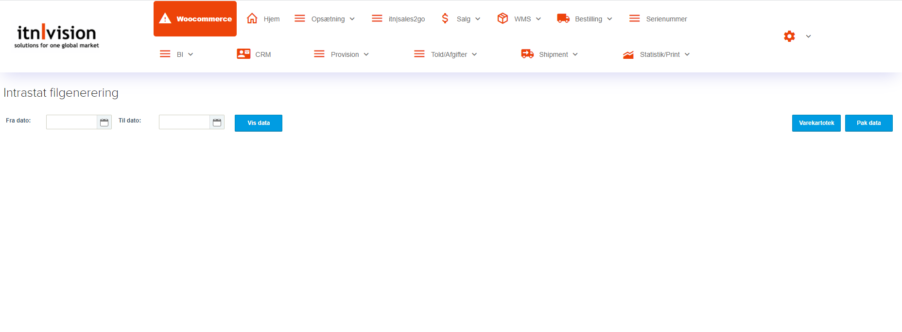- Opfyld nemt lovens krav for indberetning af intrastat til Skat og/eller Danmarks Statistik