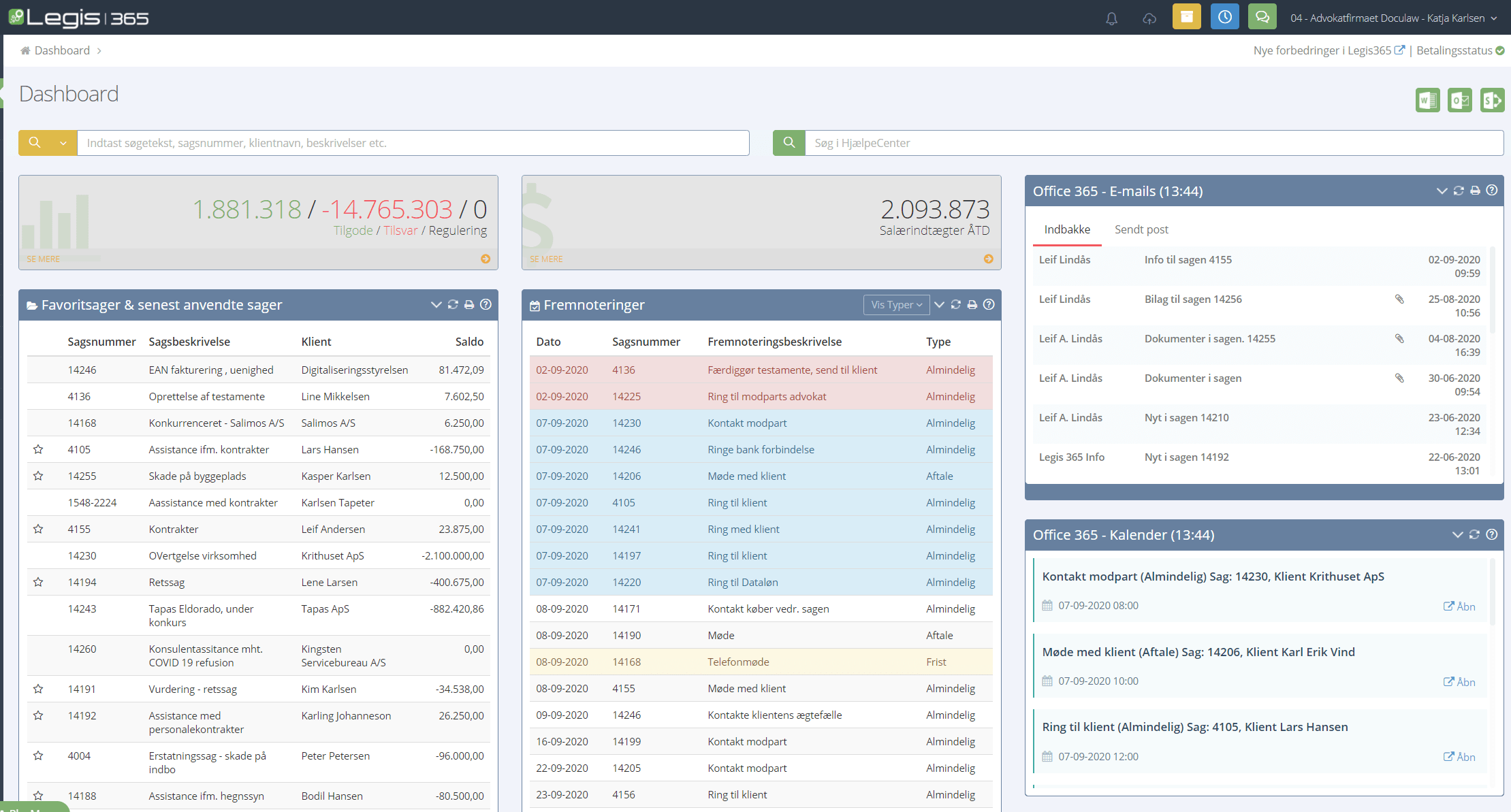- Arbejd effektivt med alle kerne funktioner til et traditionelt advokatfirma