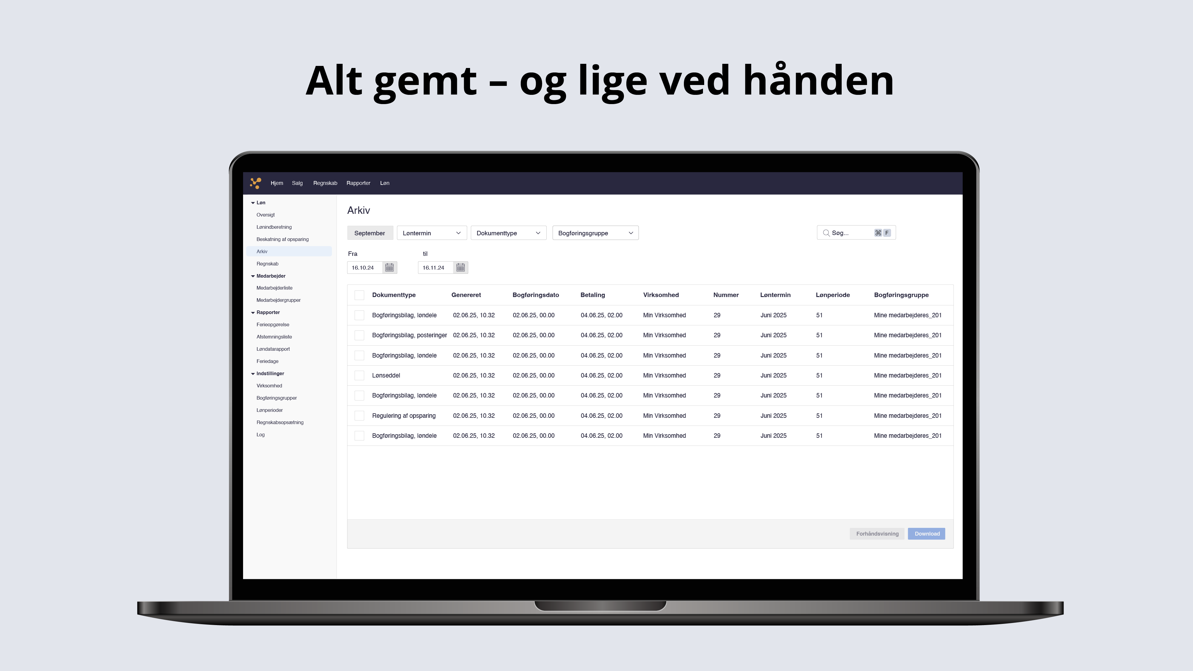 Systemet er skabt i tæt dialog med revisorer og bogholdere og tilpasset små og mellemstore virksomheder med behov for præcision, overblik og effektive arbejdsgange.