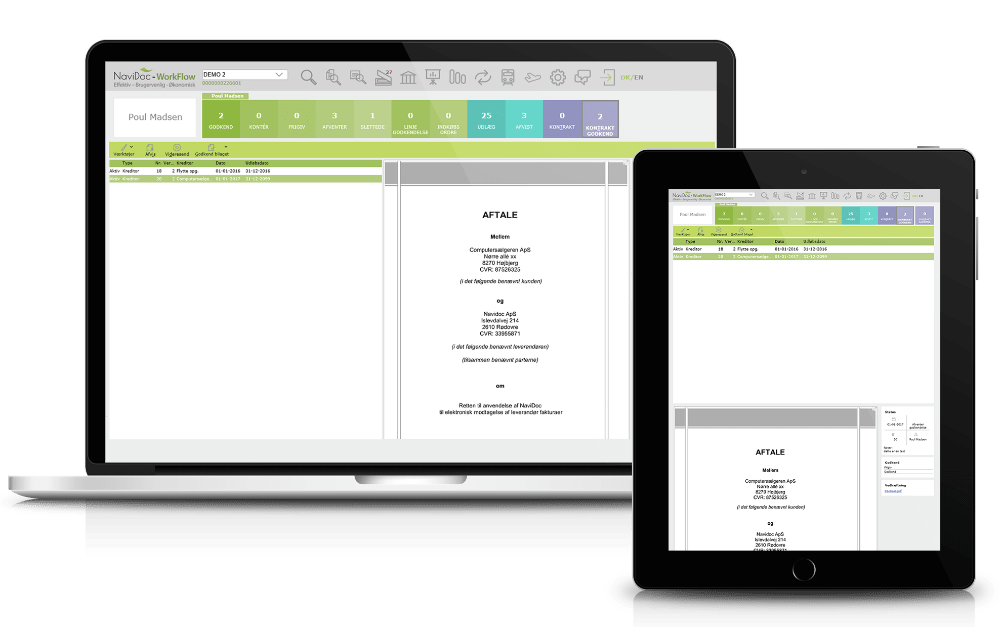 Med NaviDoc Workflow gør du modtagelse af fakturaer let og tidsbesparende i e-conomic. Du bestemmer selv hvem i virksomheden der skal godkende de indkommende fakturaer til betaling, og kan udvide løsningen med mange andre moduler, som NaviDoc tilbyder. NaviDoc Workflow er en cloud-baseret løsning, som gør den tilgængelig over alt, på alle enheder, og giver et let overblik over fakturaer og bogføring, som altid stemmer 100%. NaviDoc Workflow er brugervenligt og intuitivt, og sikrer også virksomheden mod snyd og underslæb, da virksomheden kan vælge at en faktura først skal godkendes af en bestemt person før den sendes til betaling.