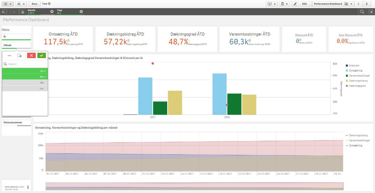 - Se omsætning og dækningsbidrag per kunde og faktura