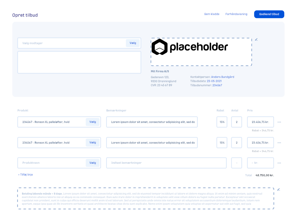 Er du engageret i daglig eller ugentlig tilbudsgivning? Med Orderstep kan du ikke alene digitalisere og optimere din tilbuds- og salgsproces, men også drage fordel af den avancerede B2B webshop og det fleksible abonnementsmodul. Ordersteps integrerede løsning er designet til at sikre enkelhed og høj kvalitet i alle aspekter af kundehåndteringen. Orderstep er mere end blot en software; det er en omfattende løsning designet til at forbedre alle aspekter af dine salgs- og kundeoplevelser. Platformen er skræddersyet til at møde dine specifikke behov, hvad enten det er gennem tilbudsgivning, orderhåndtering, eller kundeopfølgning. Kontakt Orderstep for at arrangere en personlig demonstration og se, hvad platformen kan gøre for dig.