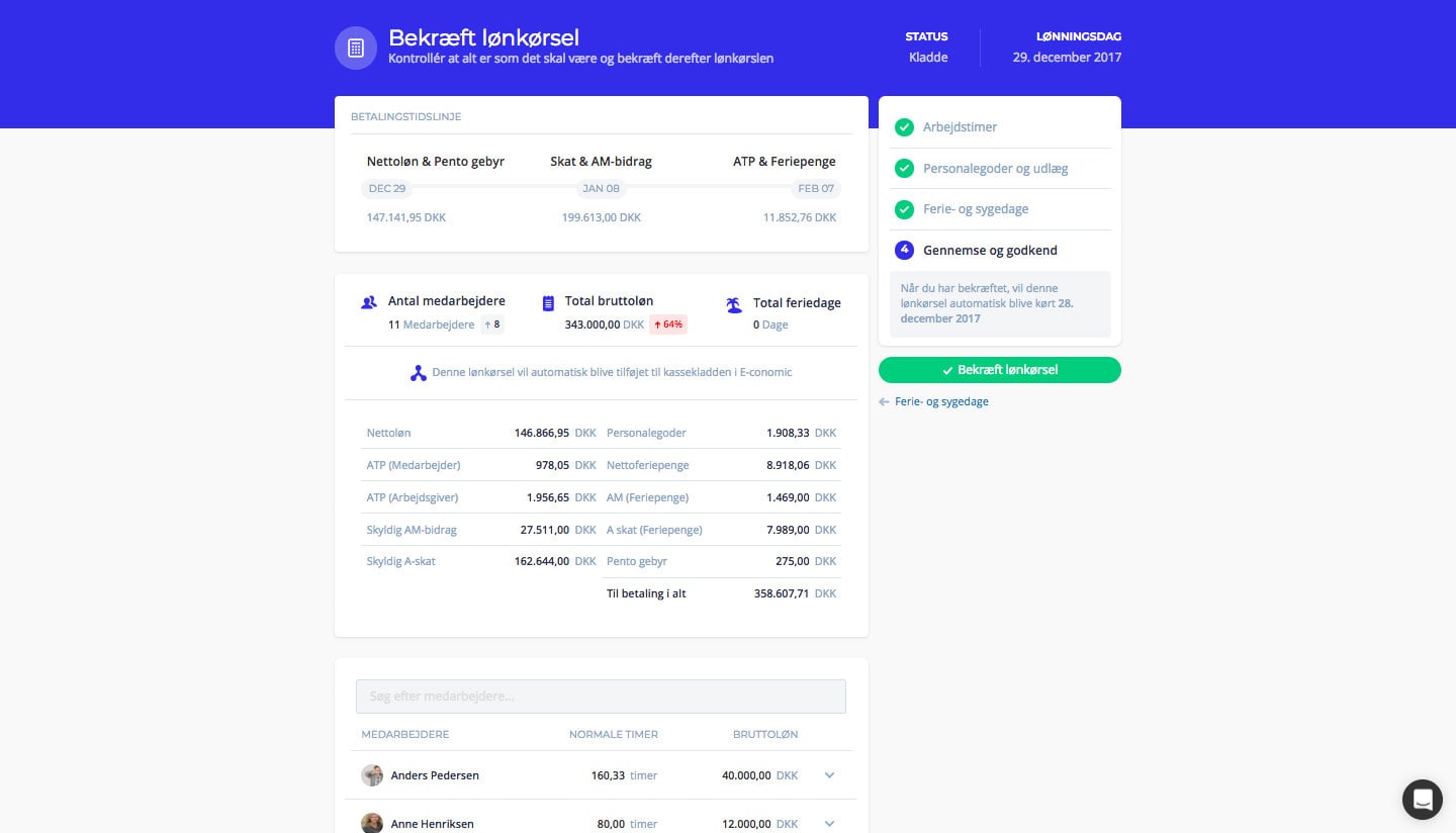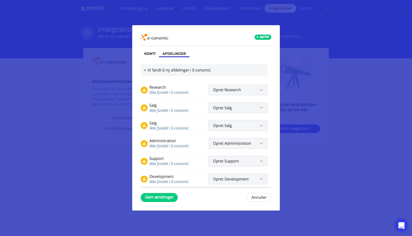Med den simple 4-step lønkørsel gør Pento det nemmere end nogensinde at udbetale løn til tiden. Opret eller importér din virksomhed på under 5 minutter med Pentos onboardingflow, så du kan komme i gang med at bruge Pento med det samme. Pento importerer gratis din data fra bl.a. Danløn, Dataløn og Proløn. Pento kan nemt og effektivt integreres med e-conomic. I opsætningen af integrationen synkroniseres kontoplaner og afdelinger på tværs af produkterne, så du bevarer overblikket og kontrollen.