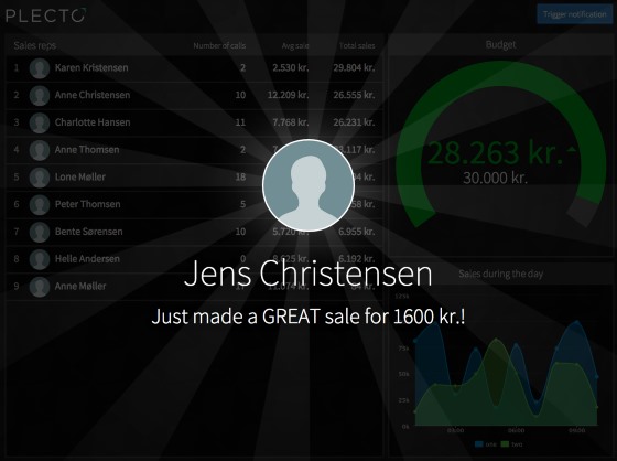 Plecto er et real-time motivationssystem, som synliggør sales performance, mål og budgetter for både medarbejderne og ledelsen. På tilpassede dashboards kan du for eksempel synliggøre dine medarbejderes individuelle mål og hvor mange af målene, der er opnået. Plecto er et fantastisk værktøj til at skabe motivation og fremhæve de aktiviteter, der er mest profitable for din virksomhed. Hvis du allerede er e-conomic-kunde, så kan du med få klik overføre dine fakturaer, budgetter og mål til dit tilpassede Plecto dashboard. Hver gang et salg eller en omkostning er faktureret i e-conomic, bliver dataene vist på dine flotte dashboards, så alle kan følge med i virksomhedens aktiviteter – det skaber både overblik og motivation.