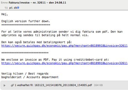 QuickPay har udviklet en faktura-app til e-conomic, som gør det muligt for jeres kunder at betale deres faktura online med deres betalingskort. Når I sender en mail-faktura fra e-conomic vil jeres kunde modtage et link, som bruges til at åbne QuickPay betalingsvinduet. QuickPay sørger selv for at hente de relevante oplysninger til fakturaen direkte fra e-conomic (f.eks. fakturanummer, beløb mv.). Kunden får så mulighed for at betale fakturaen online gennem QuickPays betalingsvindue. Når kunden har betalt for fakturaen vil I modtage en mail fra QuickPay, såfremt I ønsker dette. Bemærk at fakturaen ikke bliver bogført som betalt i jeres e-conomic aftale. Det bør først gøres når I bogfører indbetalinger på baggrund af bevægelser på jeres bankkonto - på helt normal vis.