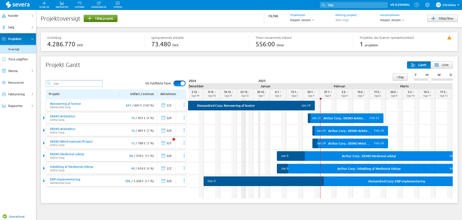 - Få styr på dine projekter og ressource allokeringen, så de rigtige folk arbejder på de rigtige projekter