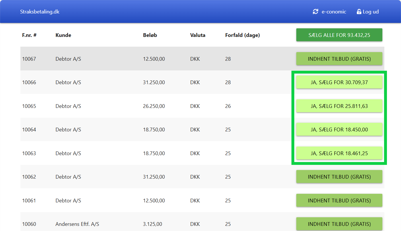 - Fleksibilitet: Vælg selv hvilke fakturaer du vil sælge og hvornår