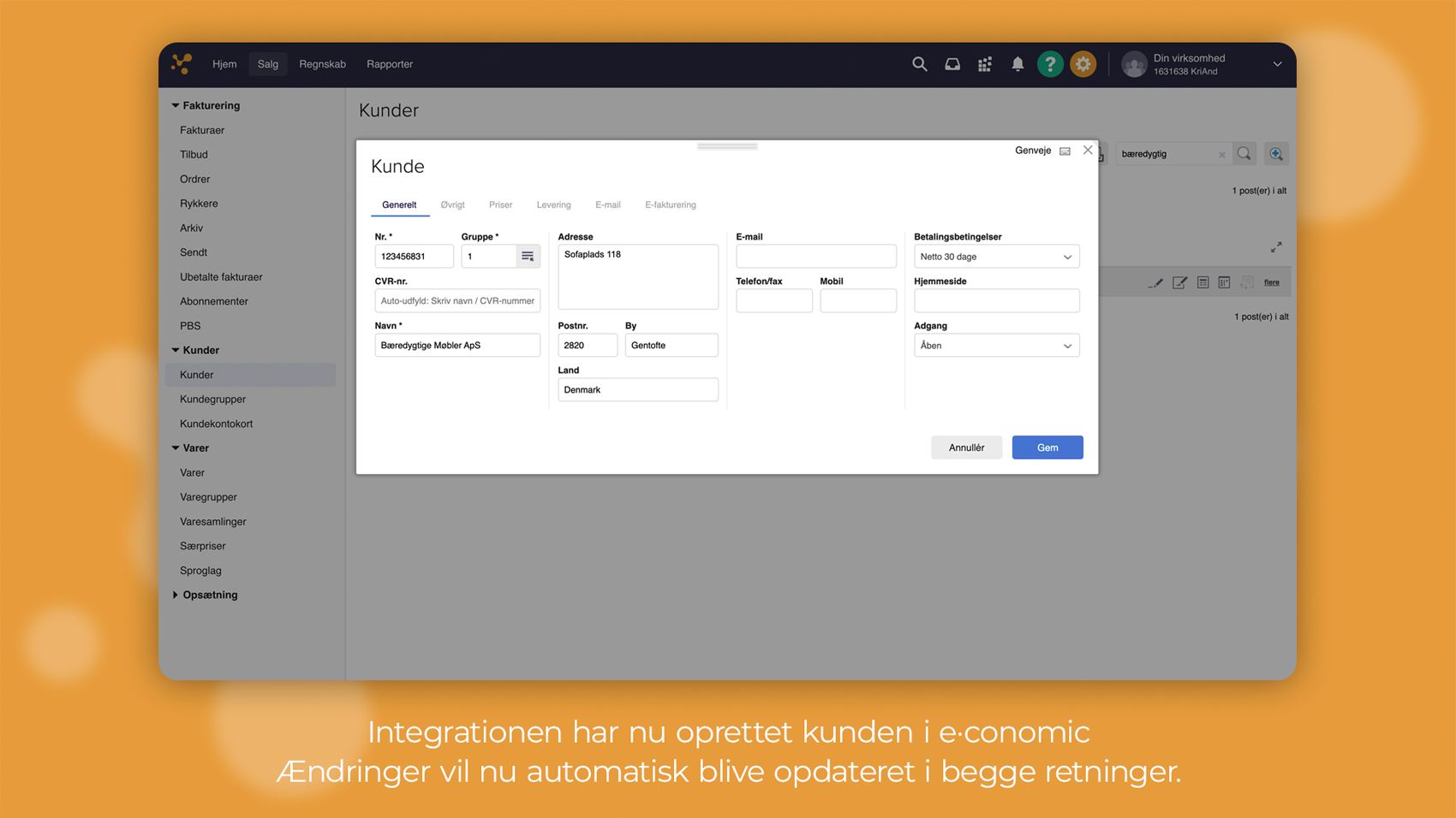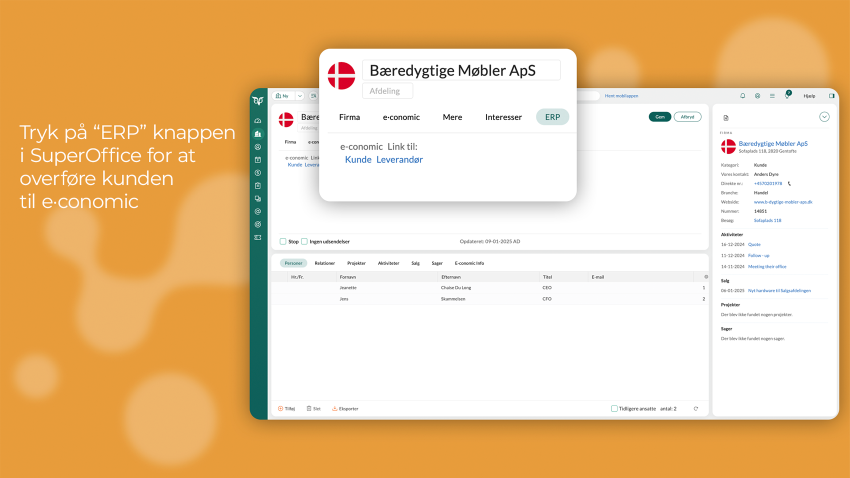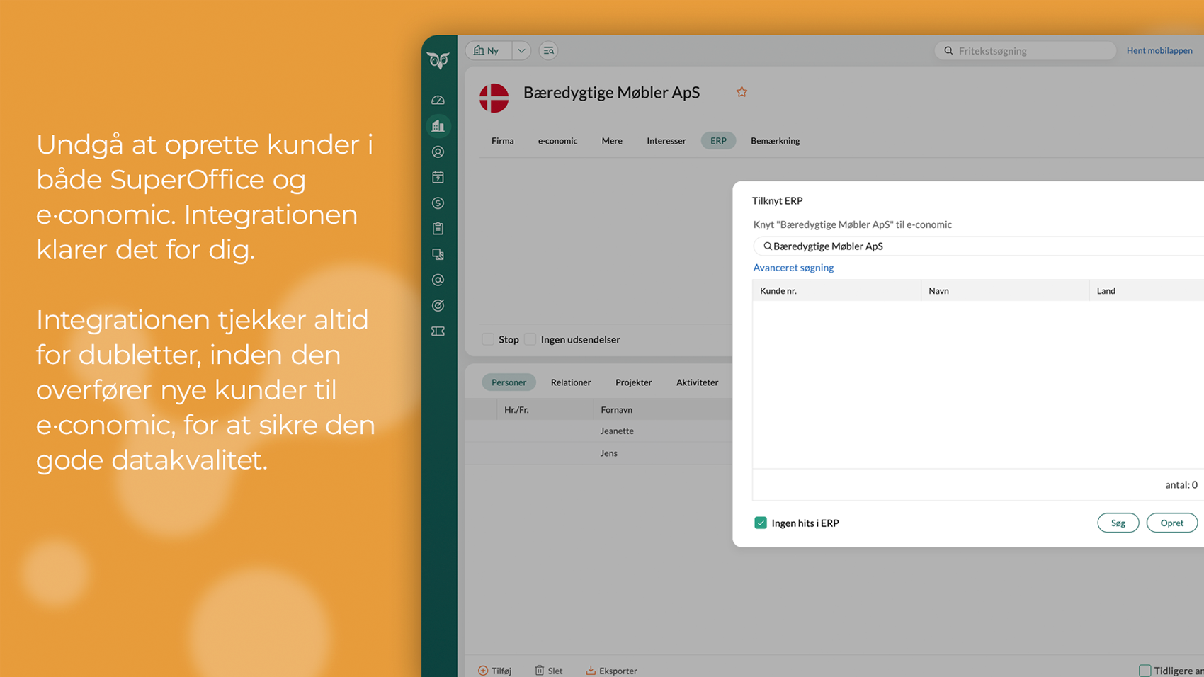 - Afliv manuelle arbejdsgange. Klik nemt nye kunder fra SuperOffice over i e-conomic