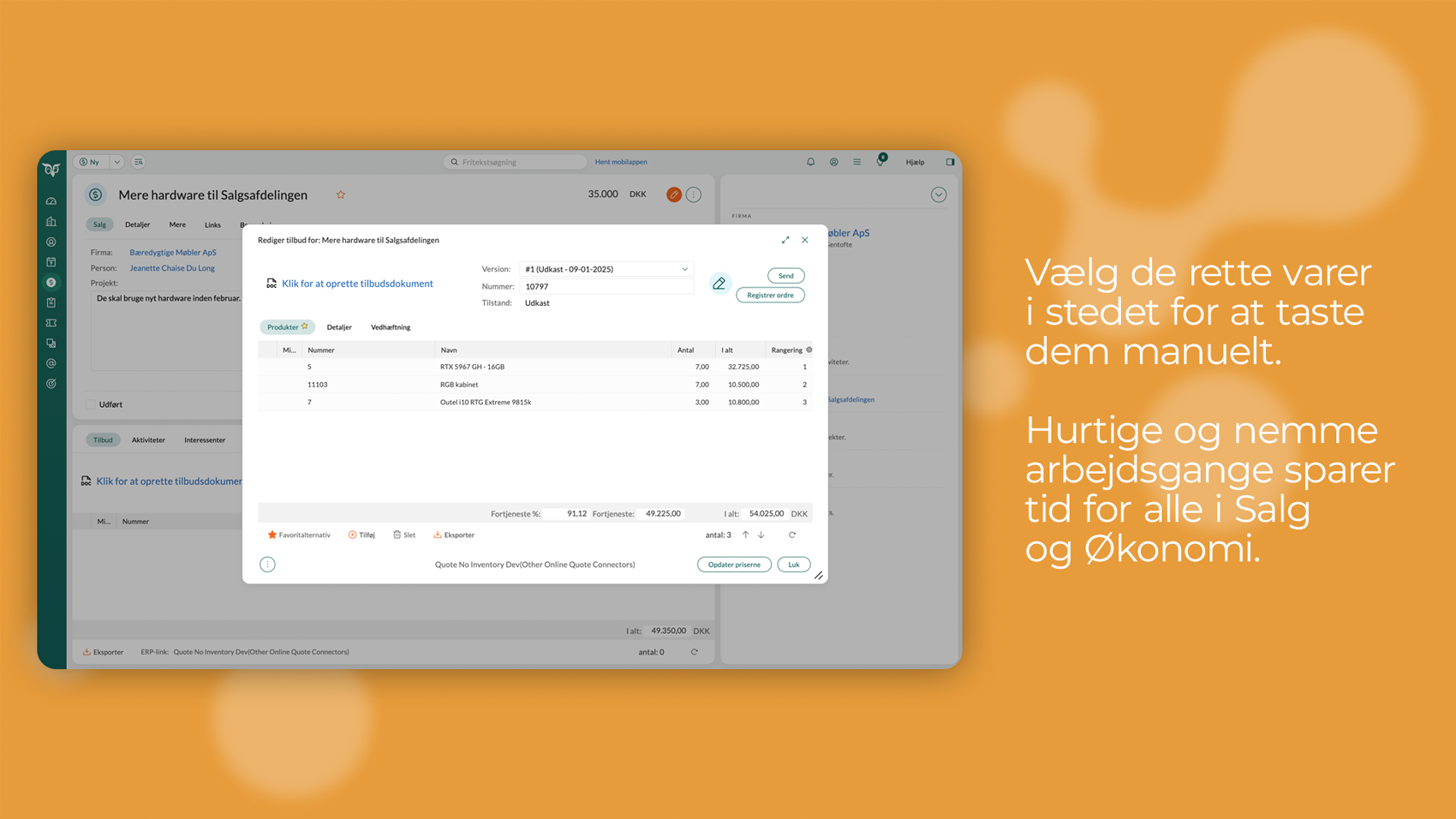 - Gør din pipeline mere præcis ved at lave tilbud i SuperOffice, baseret på prislisten i e-conomic