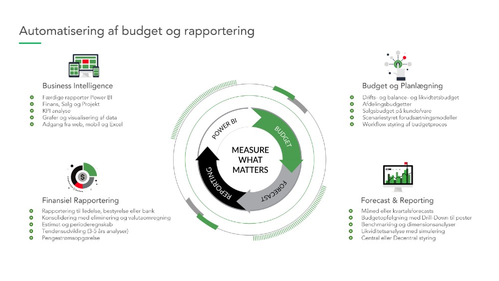 - Hent, bearbejd og præsentér automatisk finans- og salgstal til et stærkt analyse- og beslutningsgrundlag