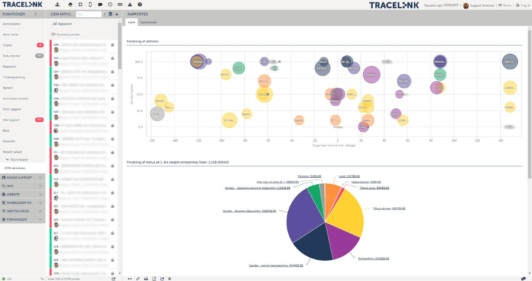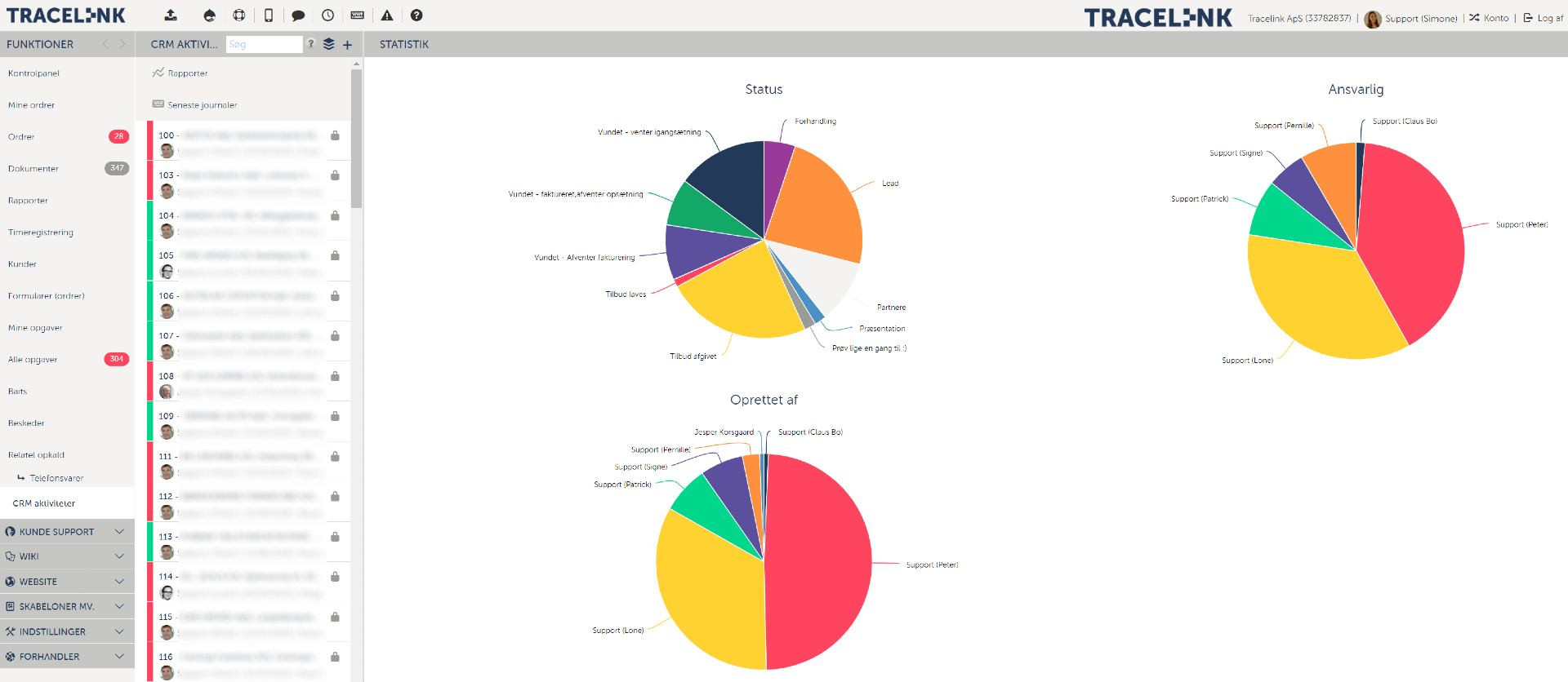 Med Tracelinks CRM-modul kan I samle alle informationer om eksisterende og nye kunder ét sted. I får ikke kun et bedre overblik over jeres kunders indkøbshistorik, I får også mulighed for at følge op på ordrer, dokumenter, analyser og rapporter. Rapporterne giver et samlet overblik over salgsforløbet. Tracelinks CRM-system er et tilbuds- og salgsmodul, der dokumenterer kommunikationen mellem jer og jeres kunder. Modulet gør det nemt at holde styr på status på de forskellige kunder. I har adgang til statistik over sager, der er vundet eller tabt. Alle sager kan, når de vindes, med et enkelt klik konverteres til ordrer, hvor alle relevante oplysninger gemt på CRM-sagen kopieres til ordren. Med integration til e-conomic kan I fakturere kunden, så snart arbejdet på ordren er afsluttet.