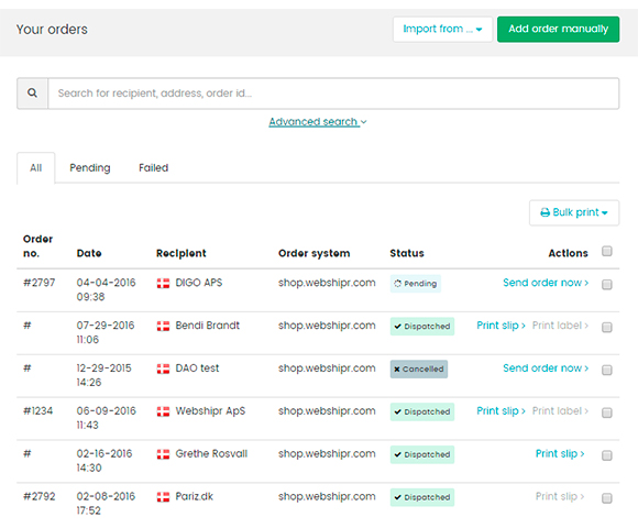 Webshipper gør det muligt for dig at konvertere dine ordrer og fakturaer til labels, følgesedler og track & trace. Med Webshipper kan du automatisere hele dit fragt-flow fra valg af forsendelsestype og fragtleverandør til print af label og følgeseddel, generering af told dokumentation og afsendelse af tracking til kunden. Hele processen sker automatisk og tager kun 5 minutter at komme i gang med. Webshipper understøtter fragtleverandørerne Post Danmark, GLS, Bring, DAO 365, DHL Express, DHL Parcel, UPS, Coolrunner, Swipbox, ShipX, Parcel Feeder og GTX.