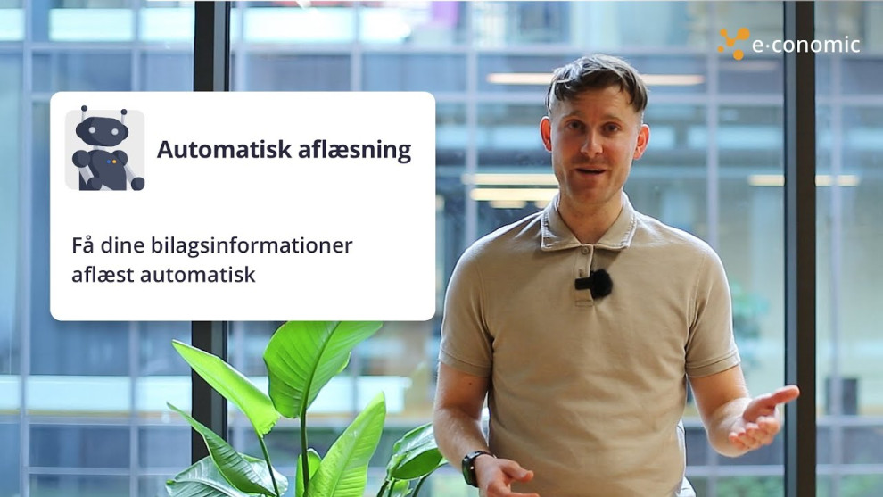 - Automatisk aflæsning: e-conomic aflæser og udfylder selv bilagsinformationer