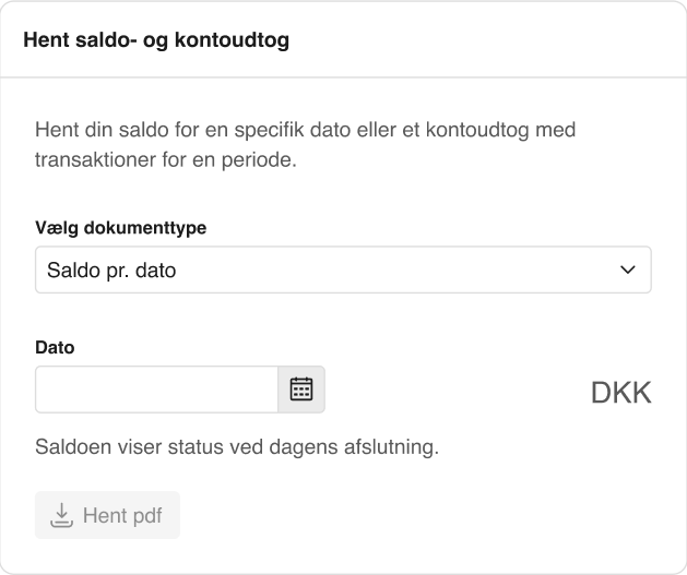 4. Vælg dokumenttypen "Saldo pr. dato" og vælg den dato, du ønsker at afstemme din konto fra.