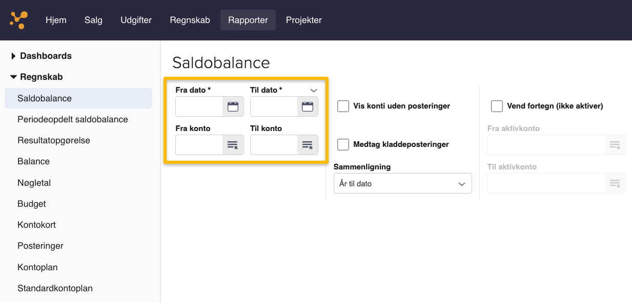 3. Indtast perioden du vil afstemme fra i felterne "Fra dato" og "Til dato".