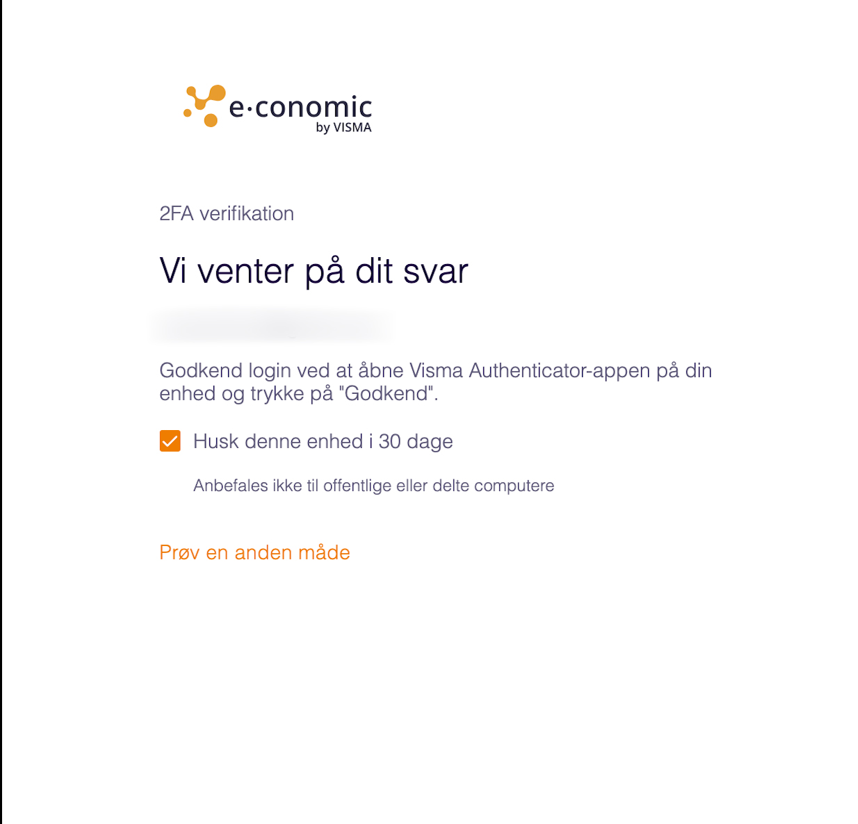 Med appen opsættes 2FA ved blot at logge ind med dit normale e-conomic-login.