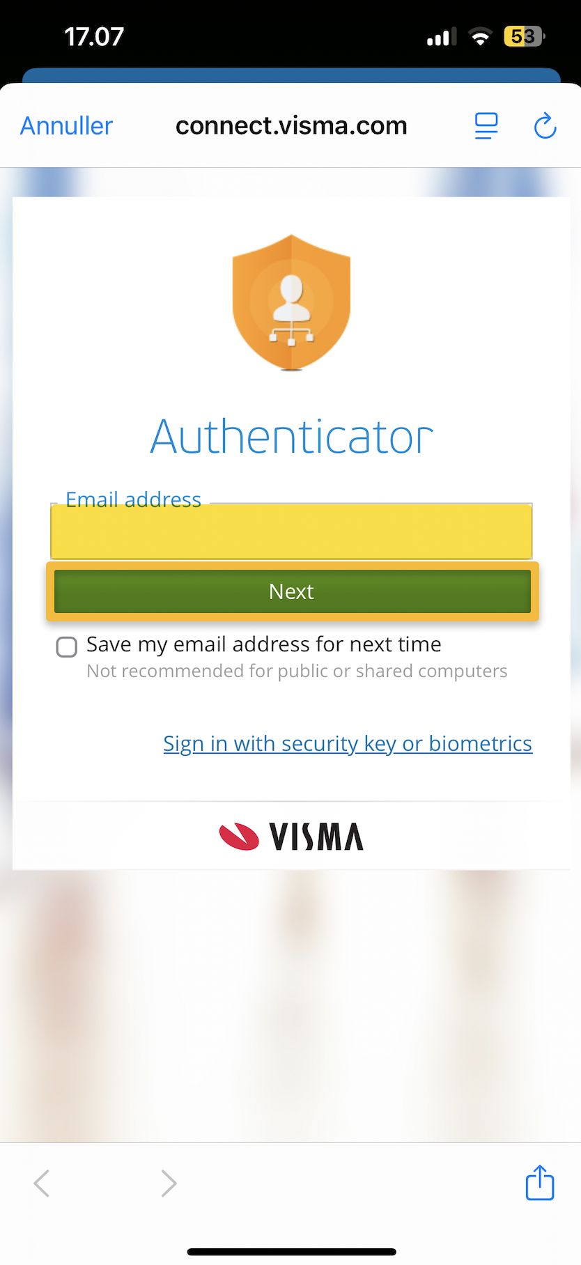 Aktiver 2FA med Visma authenticator