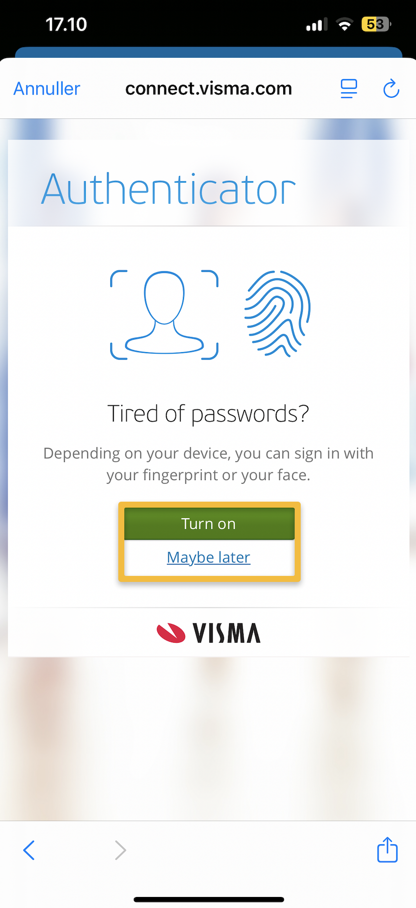 Aktiver 2FA i Visma authenticator appen