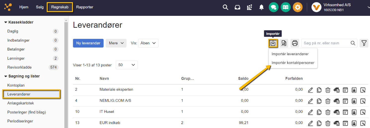Indlæs kontaktpersoner på dine leverandører
