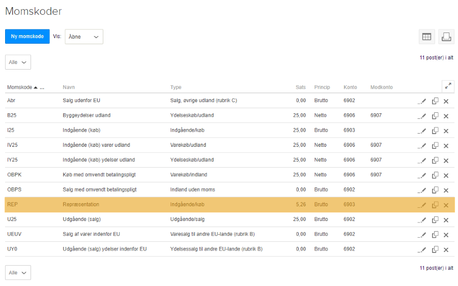 Hvis du indtaster momssatsen i e-conomic med flere decimaler, skal du være opmærksom på, at du kun kan se 2 decimaler i oversigtsbilledet. Den vil dog regne med flere decimaler, når du bruger momskoden, således momsen bliver korrekt.