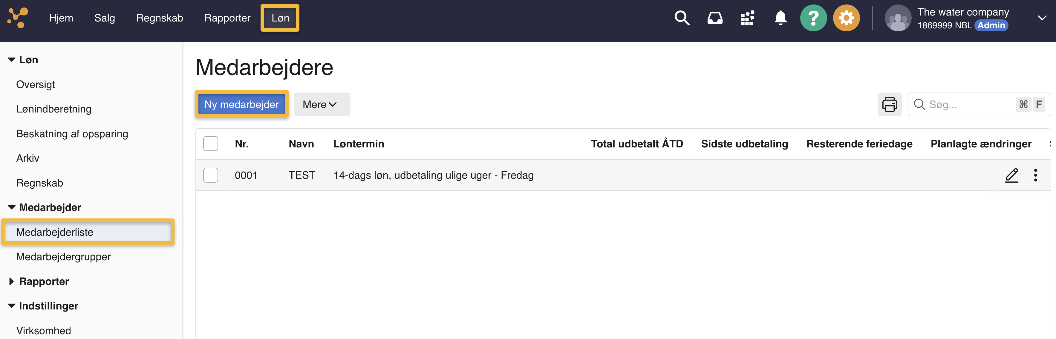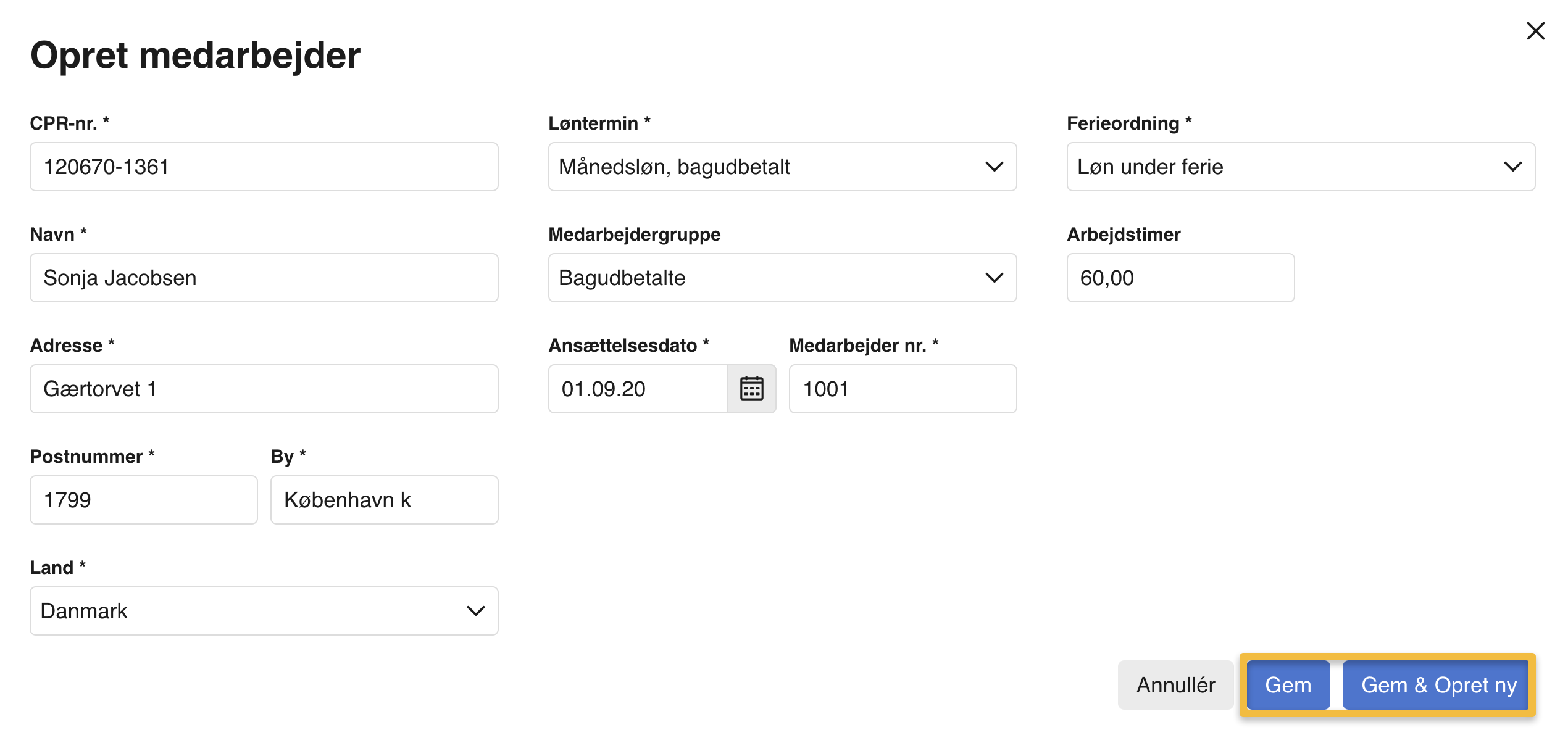 - Tryk på "Ny medarbejder" og udfyld felterne.