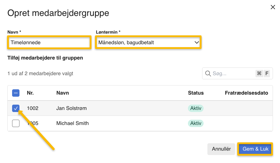 - Under, kan du tilføje de medarbejdere som skal være en del af gruppen, fra oversigten.