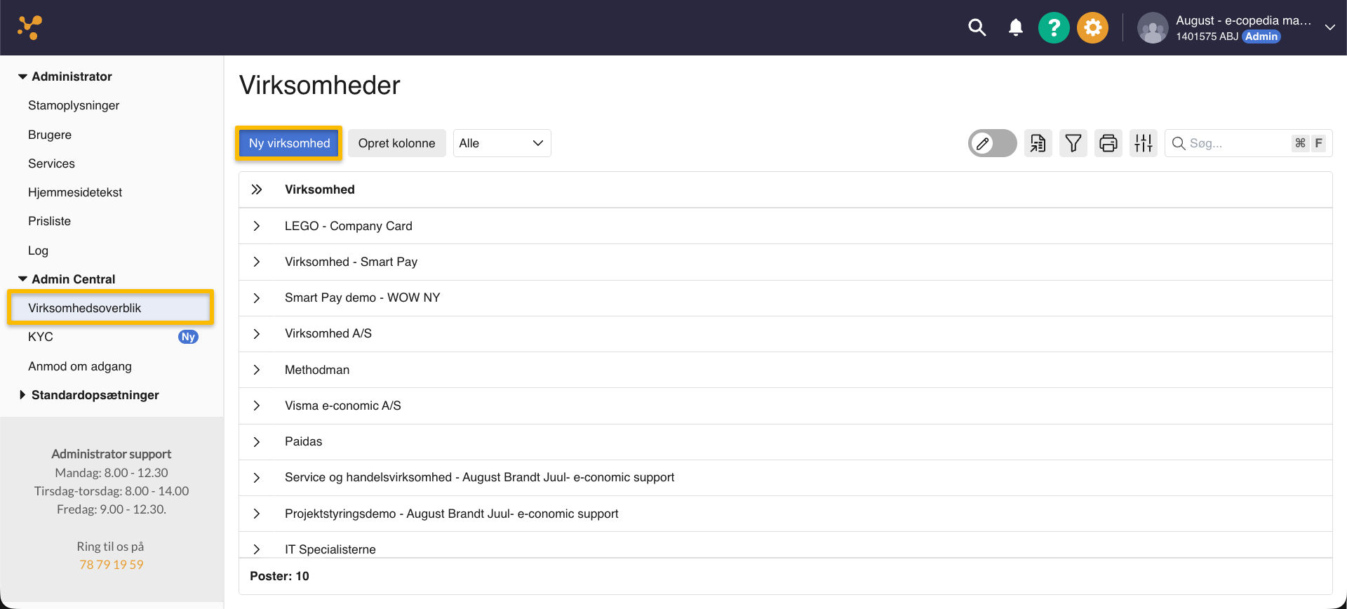 Når du opretter en ny virksomhed (aftale) via din administratoradgang, er du allerede tilvalgt som administrator på den nye aftale. På den måde slipper du for at oprette aftalen på hjemmesiden og efterfølgende bede din kunde om at tilvælge dig som administrator.