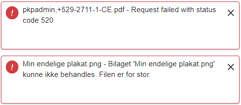 Har du problemer med at få overført PDF-filer til din aftale? Får du en fejlbesked, som dén der vises nedenfor?